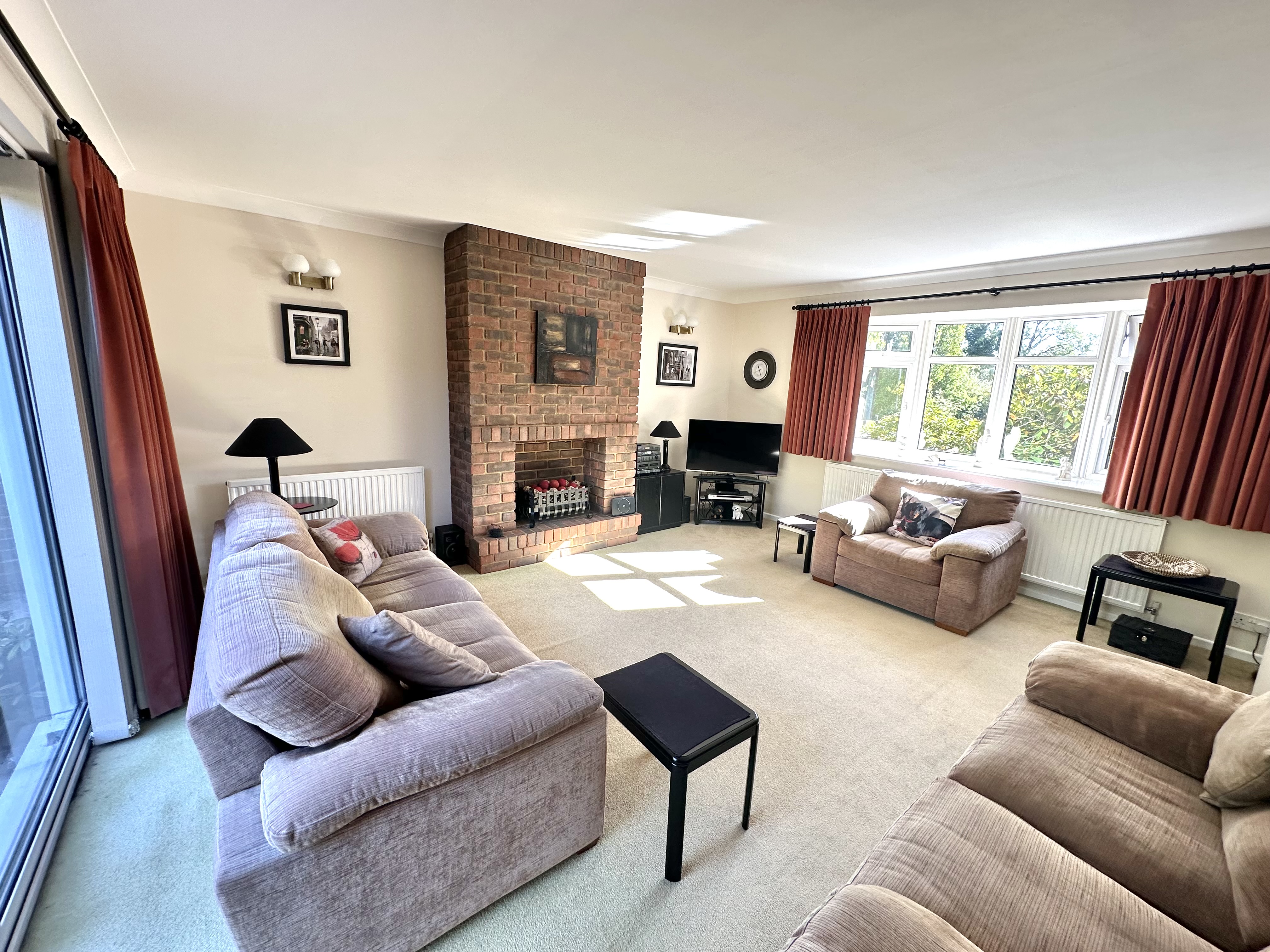 A double aspect room with bay window to the front and patio doors leading to the rear garden, two radiators, coved ceiling, TV point.