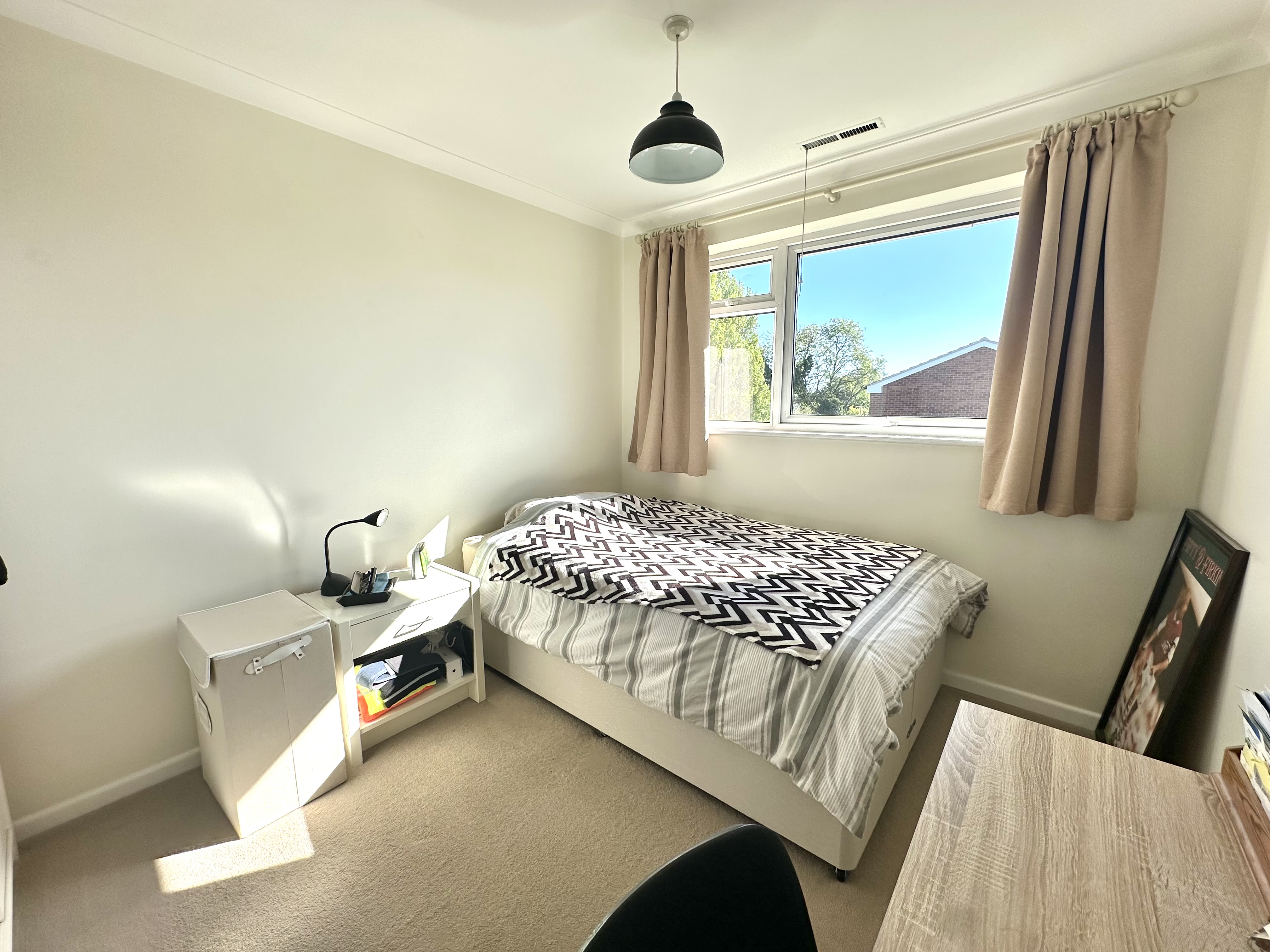 Window overlooking the rear garden, built in double wardrobe.