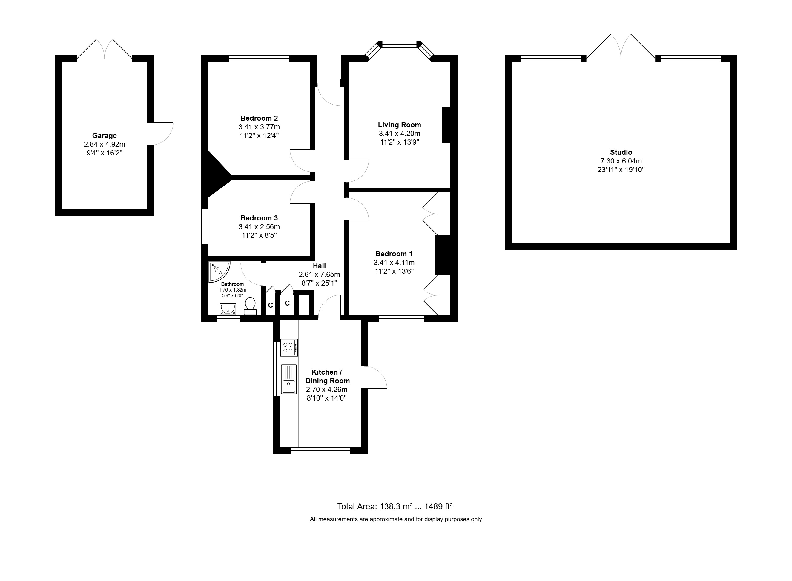 An opportunity to purchase a detached three bedroom 1920's built bungalow, located on a lovely secluded plot in a no through road in Chipperfield Village within a short walk to the village common. The property is in need of modernisation and benefits from a mains gas central heating and is connected to the mains drains. There is a detached studio building located down the garden. The accommodation comprises of Entrance Hall, Sitting Room, Kitchen breakfast room, shower room and three bedrooms. No upper chain.