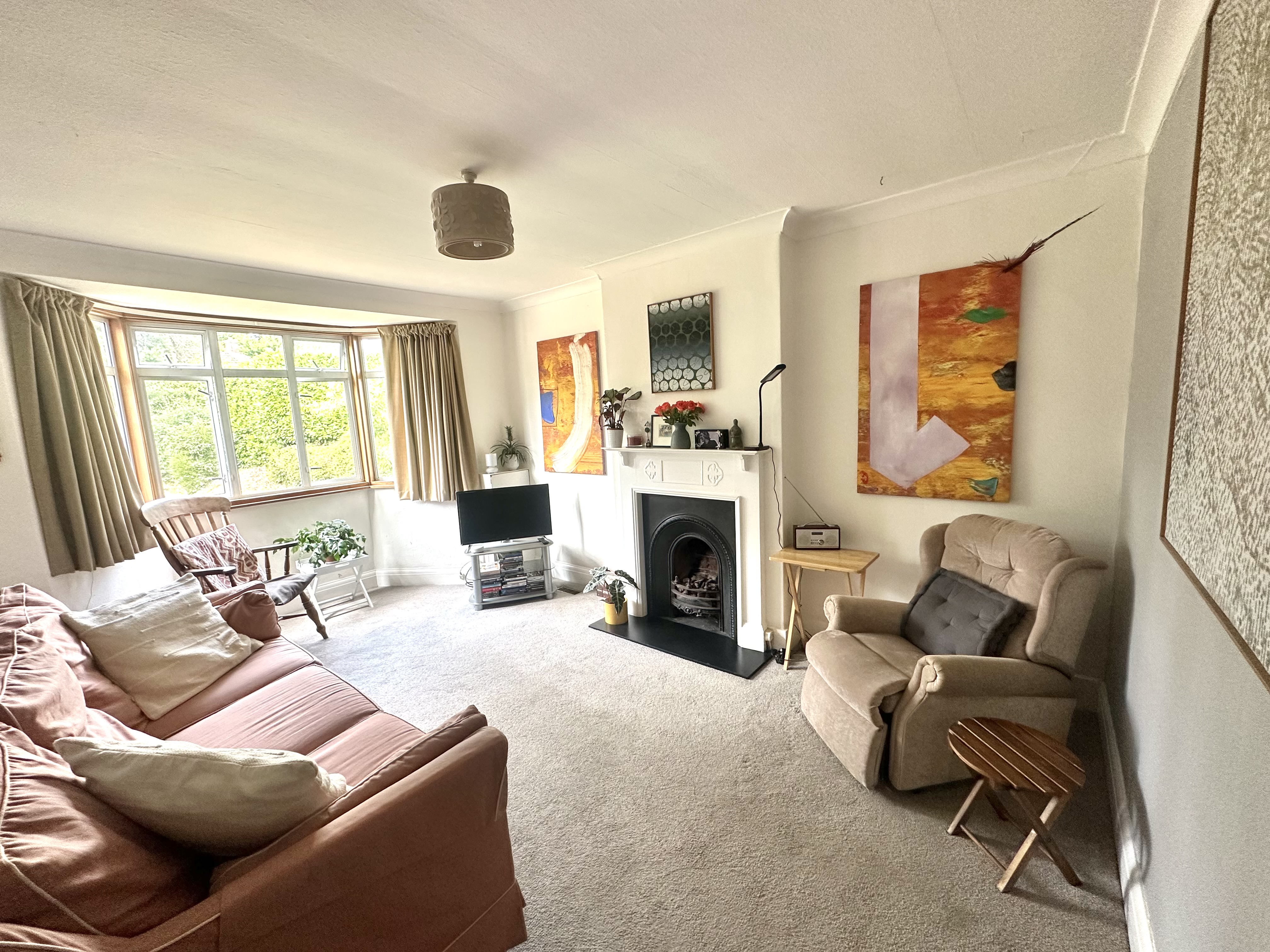 Feature bay window to front, cast iron fireplace with a slate hearth and painted wooden surround,