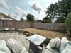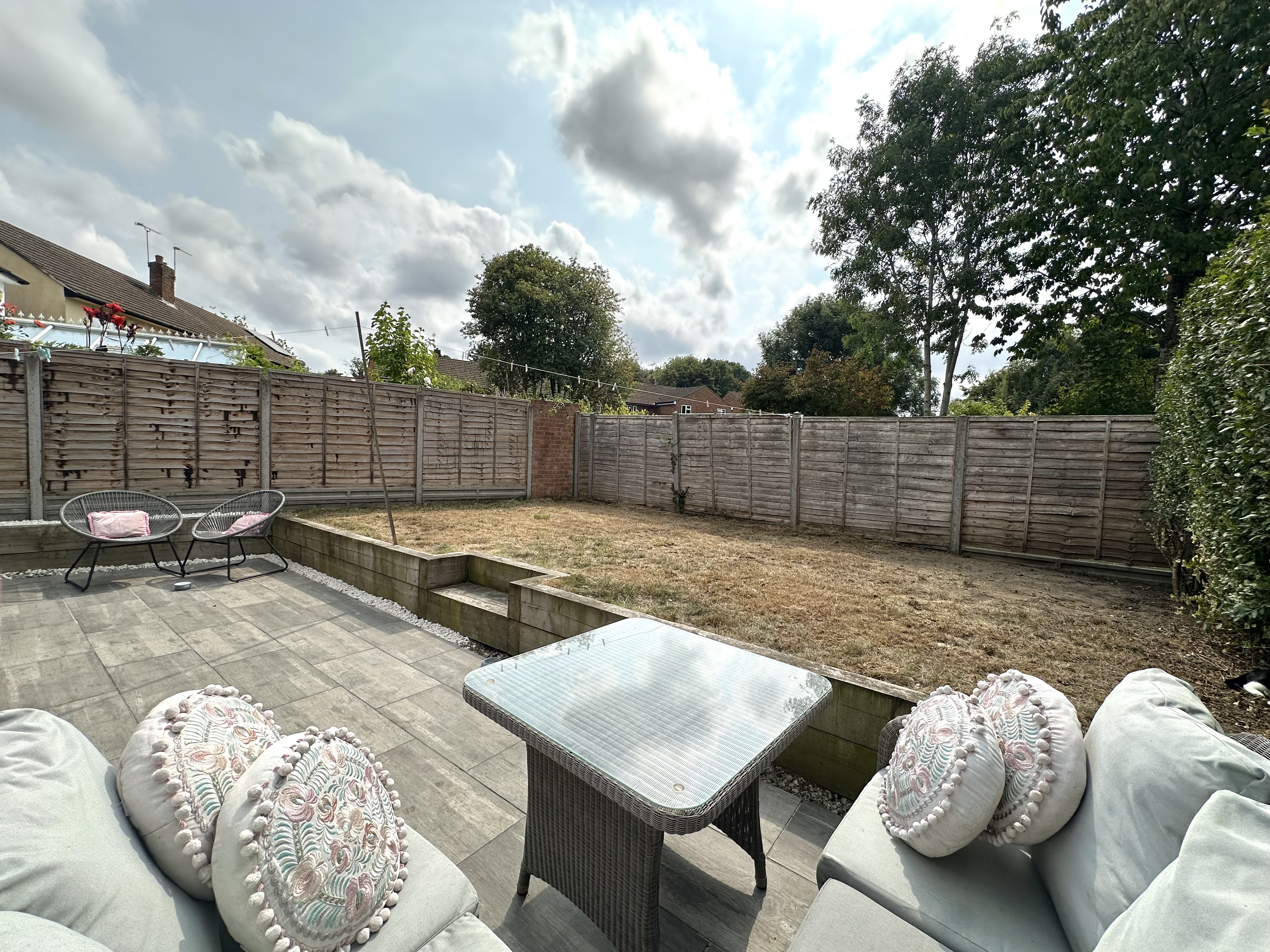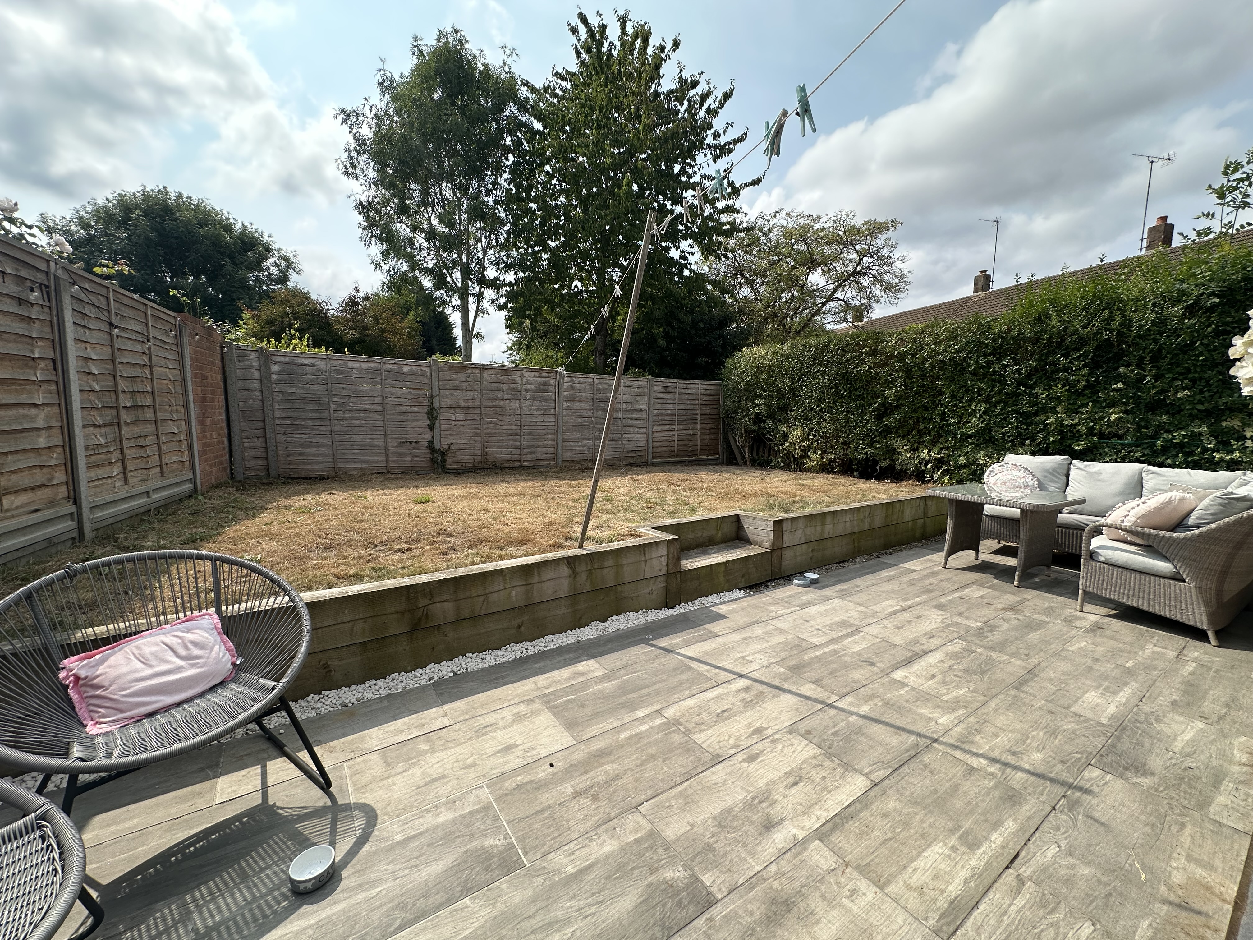 Mainly laid to lawn with a newly laid paved patio area, passage way to front, timber sleeper wall creating a raised lawn.