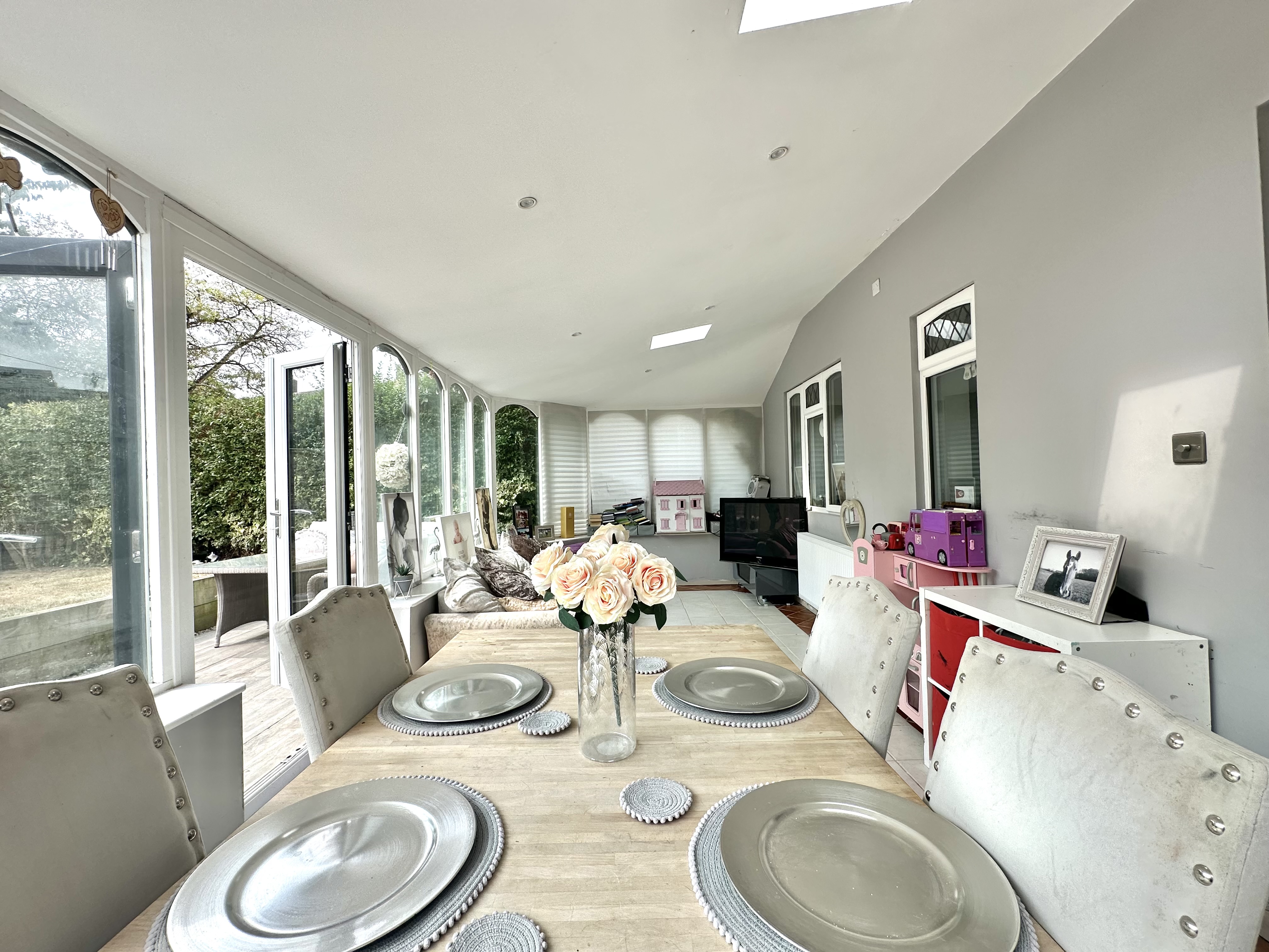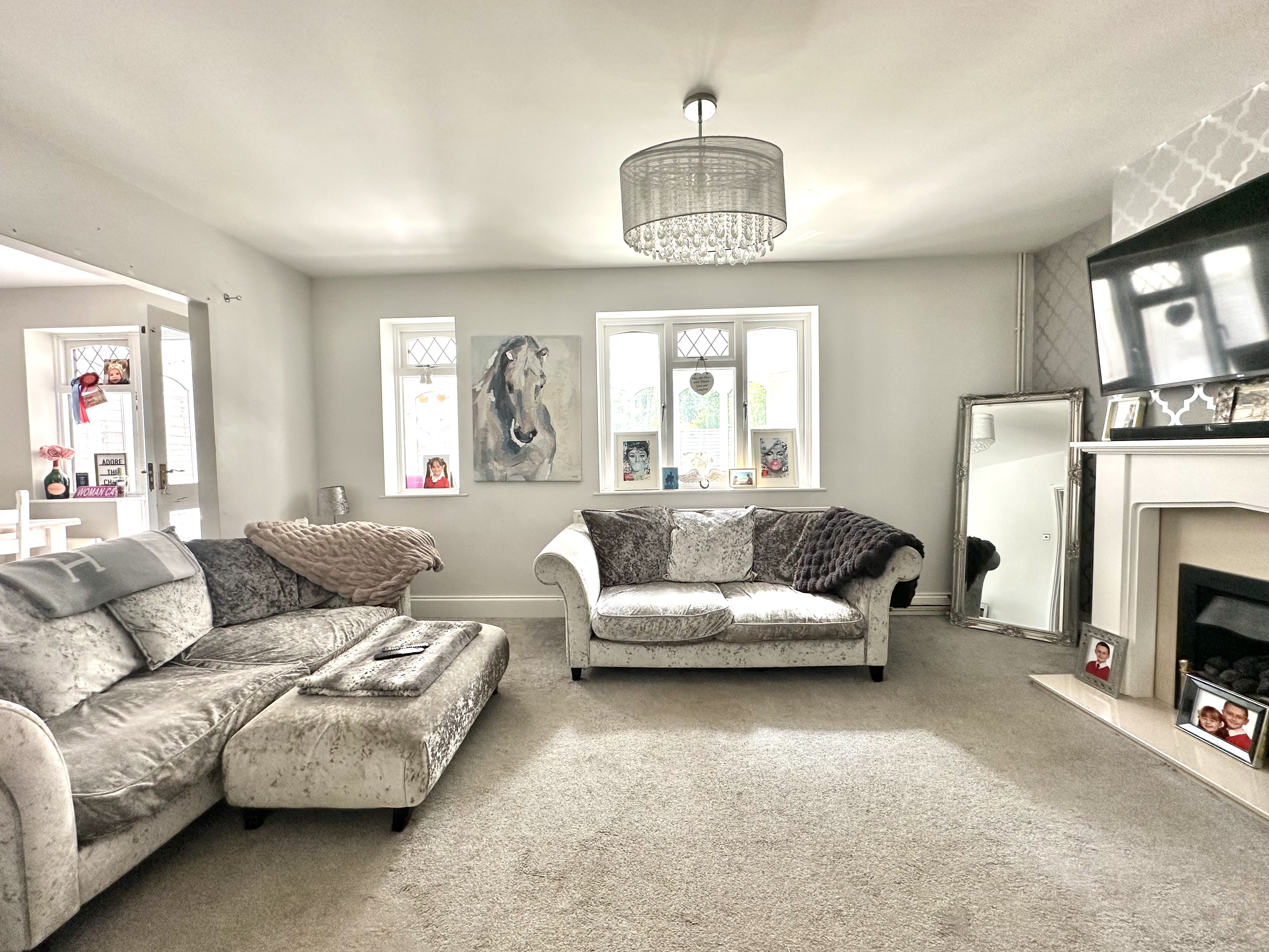 Two windows to the rear, chimney breast and fireplace, TV point, double width opening to the dining area of the Kitchen.