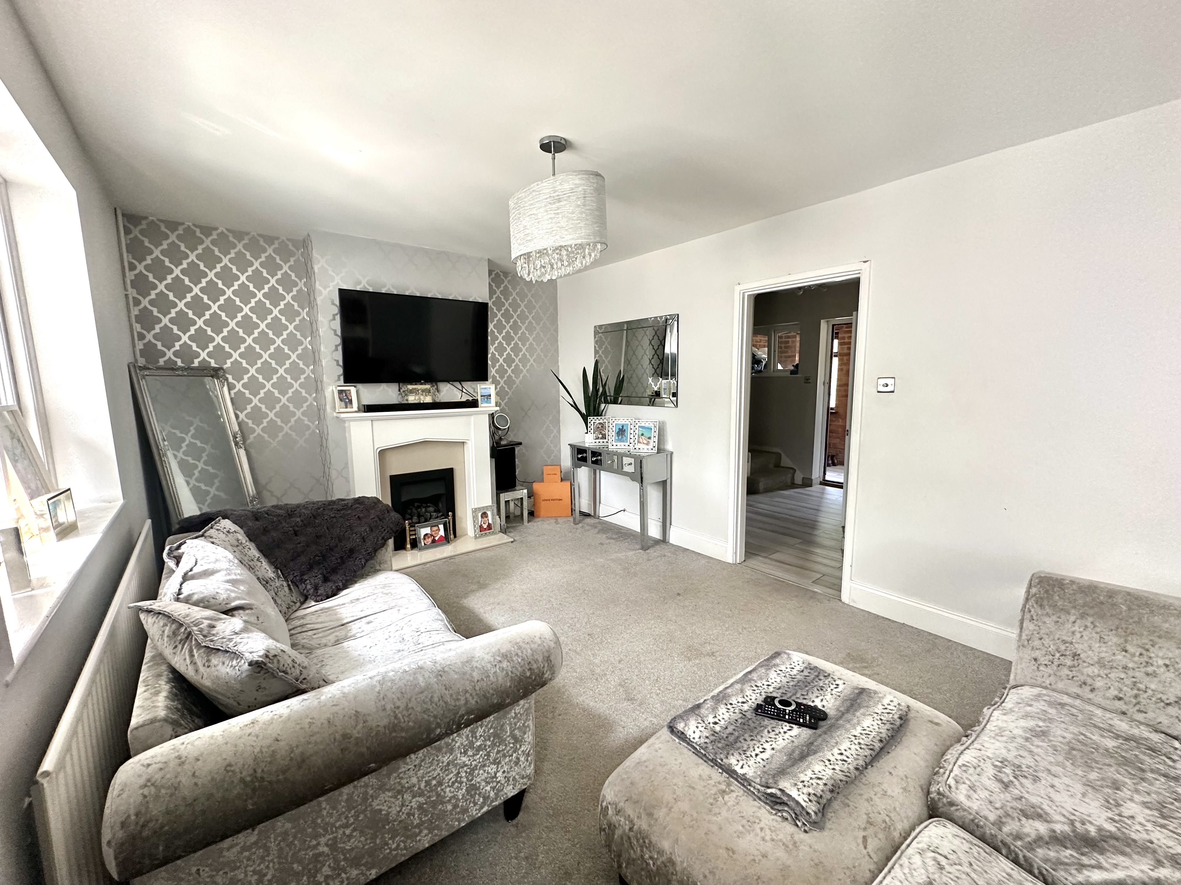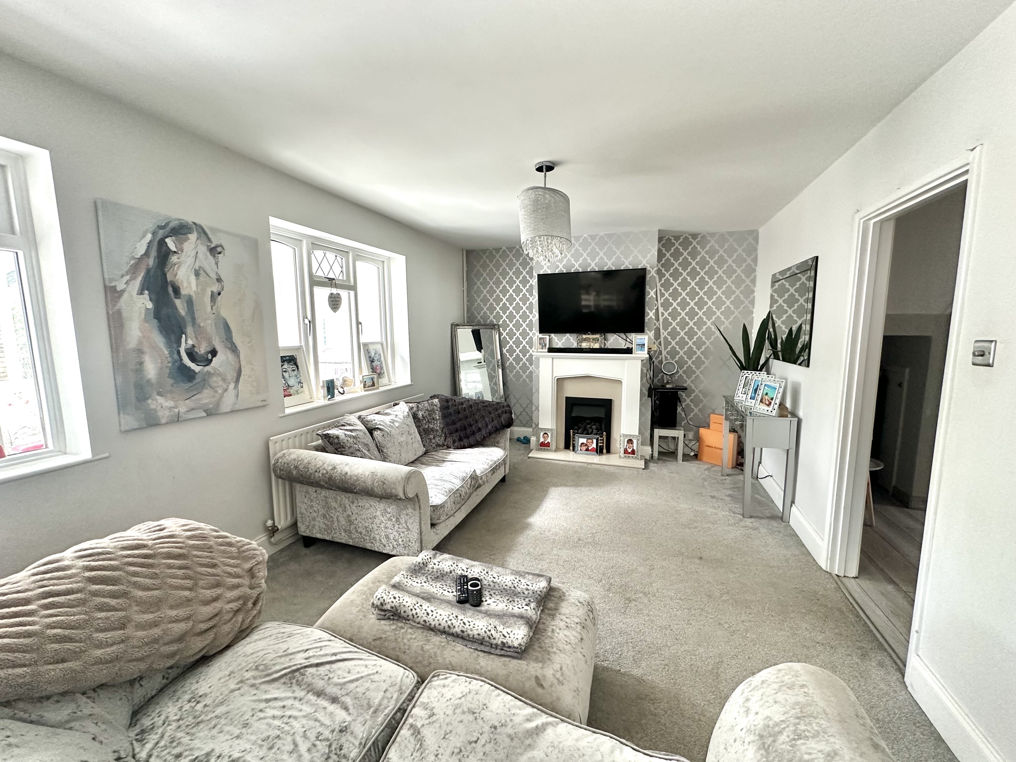 Two large lawned areas, path to front, path to side gate. (There is potential to create off road parking subject to obtaining permission to drop the kerby.