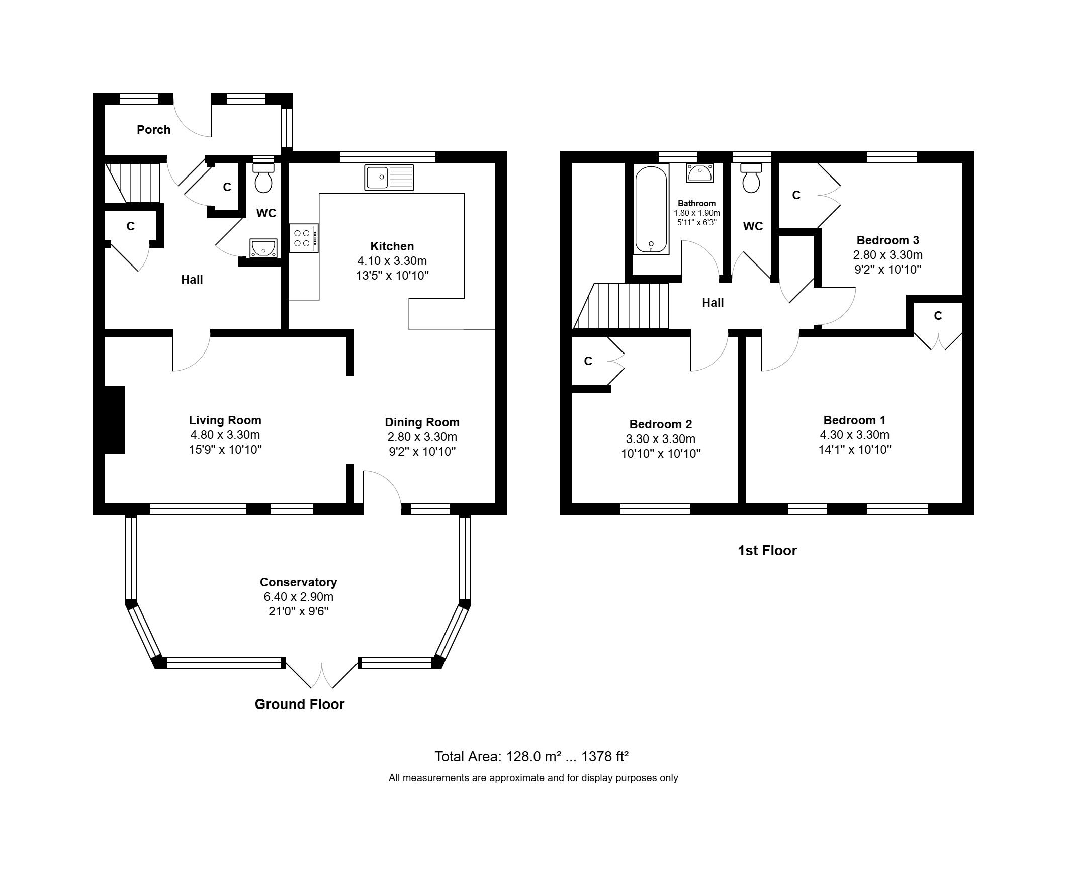 1.83m x 0.83m (6' 0" x 2' 9") Window to front, close coupled wc, pedestal wash hand basin, tiled flooring, towel radiator.