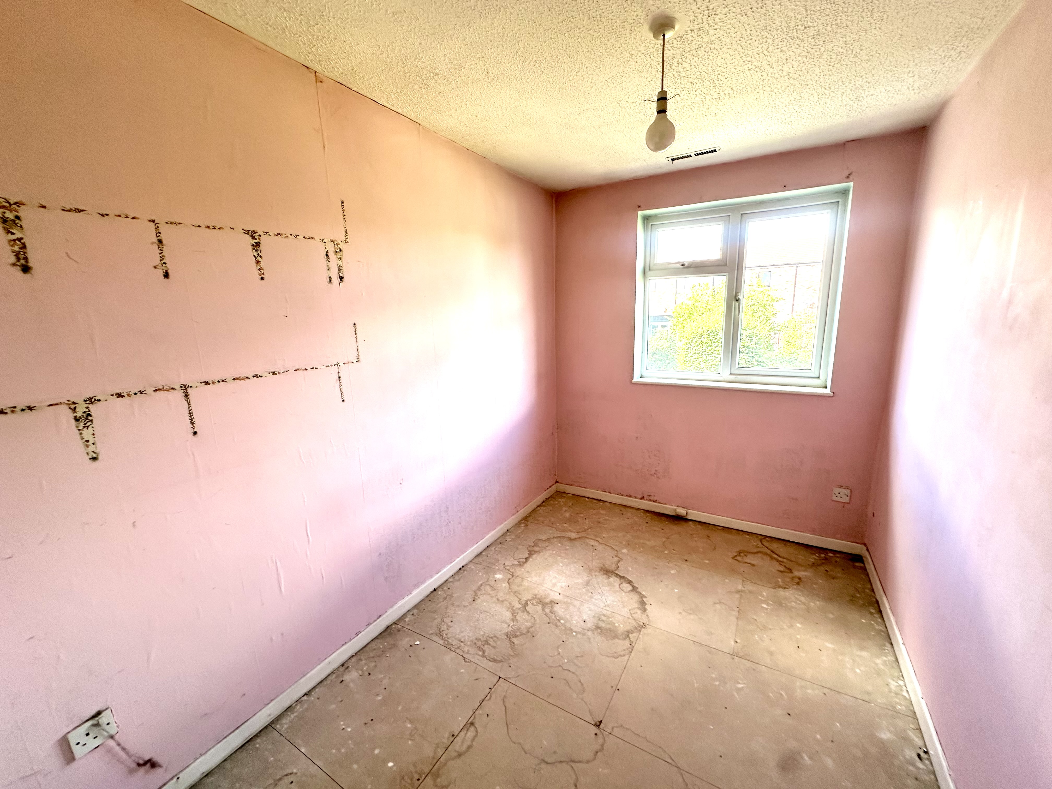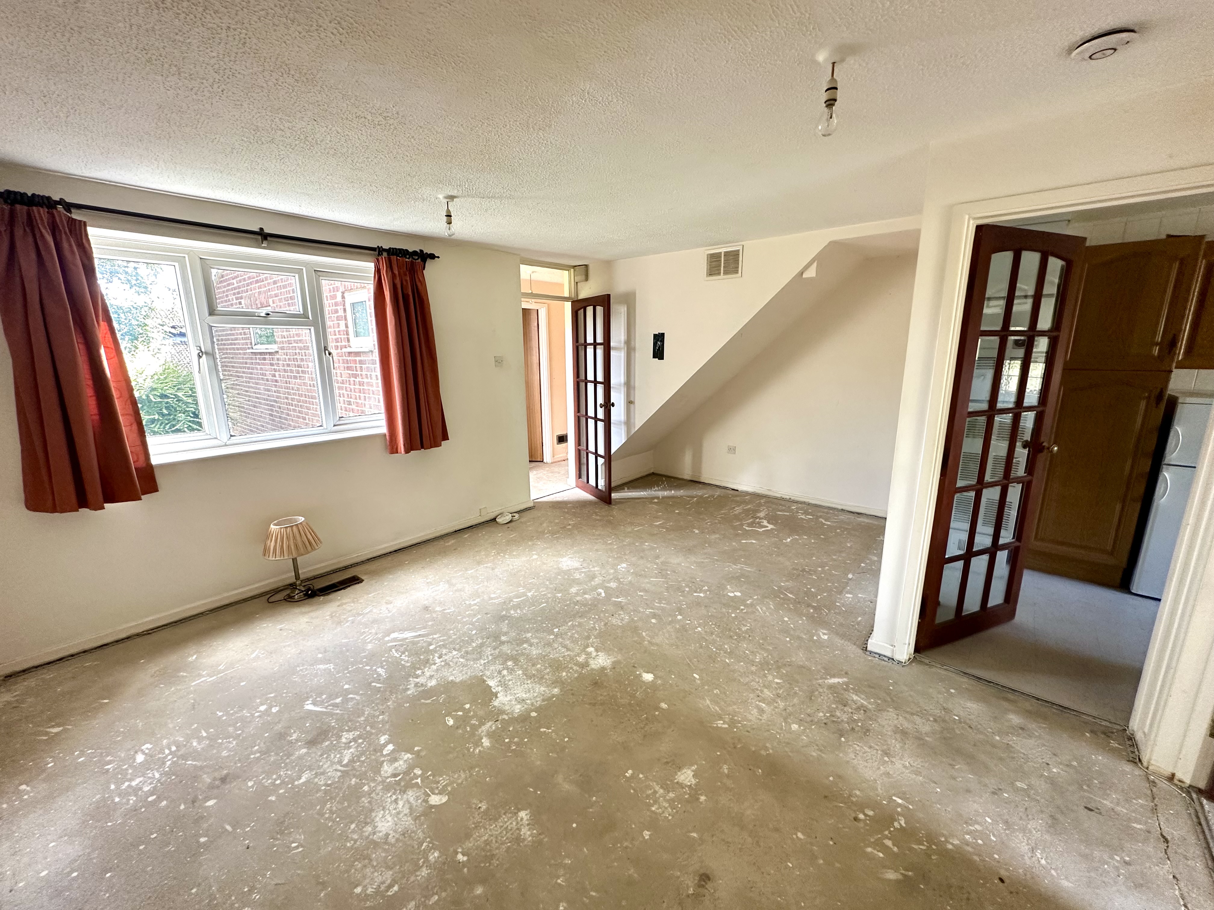 Window to front, TV point, door leading to kitchen and door leading to: