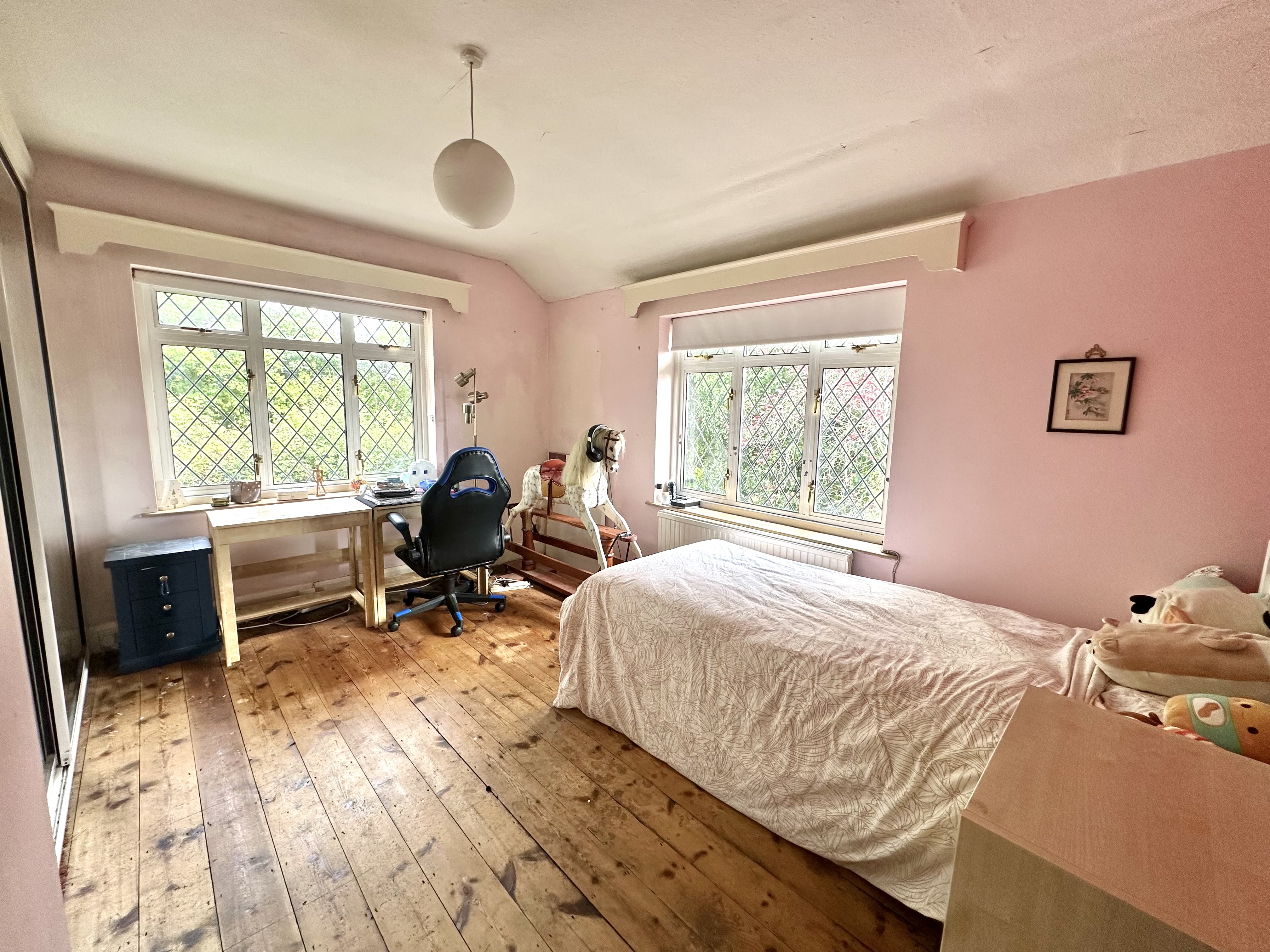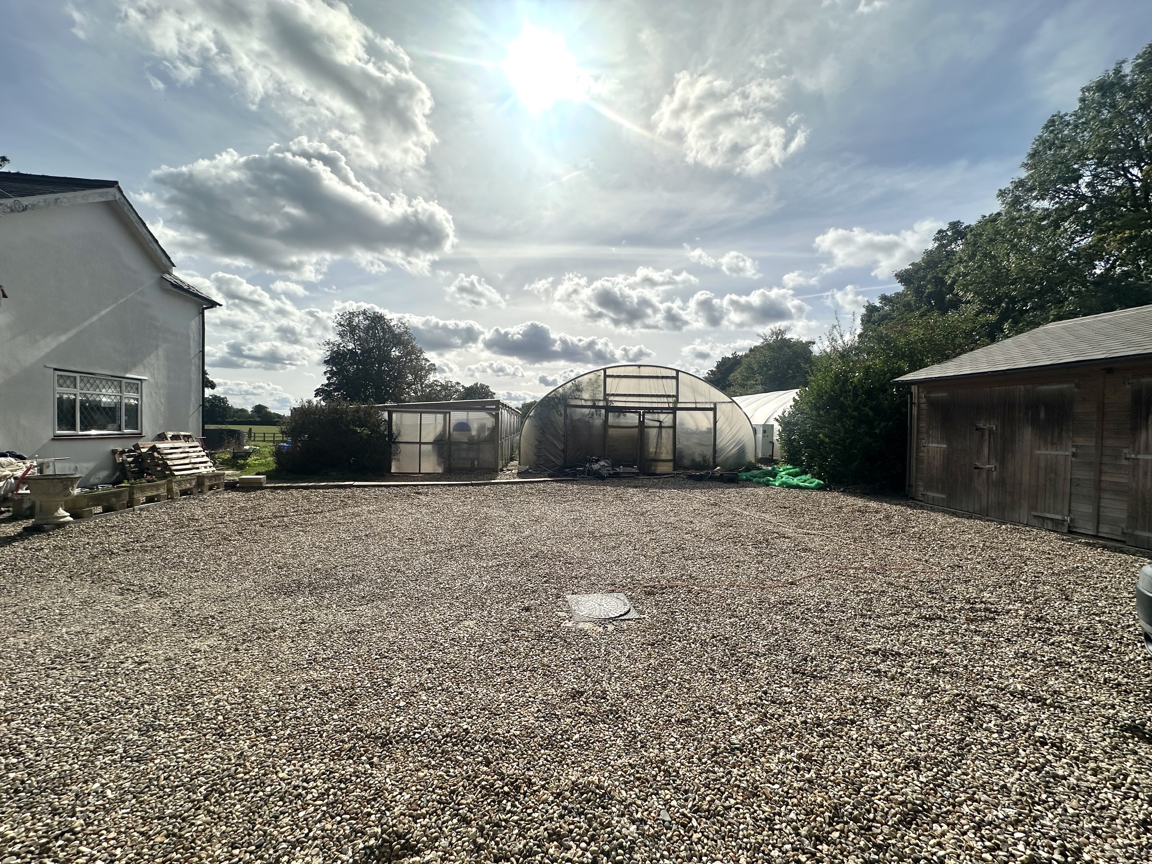A very rare opportunity to acquire a detached four bedroom family home in need of modernising sitting on a plot of just under 2 acres, with planning permission granted in full for the construction of an additional three bedroom detached family dwelling with detached car port and separate driveway, measuring approx 2,100 sqft, (Ref: 24/01690/FUL). The planning is to remove the existing polly tunnels and structures and garage to the side and create a separate gateway. The property backs and sides onto open farmland and is located down a quiet rural lane on the edge of Bovingdon Village and Flaunden Village. There is three phase electricity to the property, mains water and a bore hole giving free access to the ground water. The existing house has great potential to be re modelled to create a large kitchen family room and spacious entrance hall.
