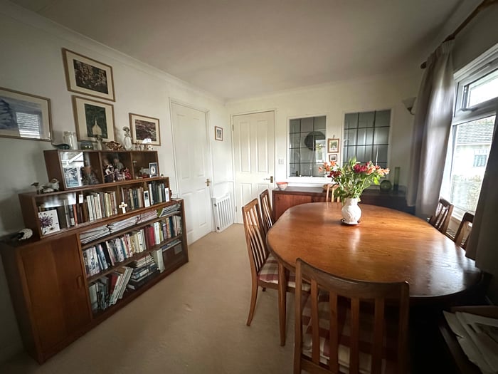 An L-shaped room with a dining area having a window to the front and a door to the kitchen, radiator, opening leading to the sitting area with a double aspect benefiting from views over the large communal green area.