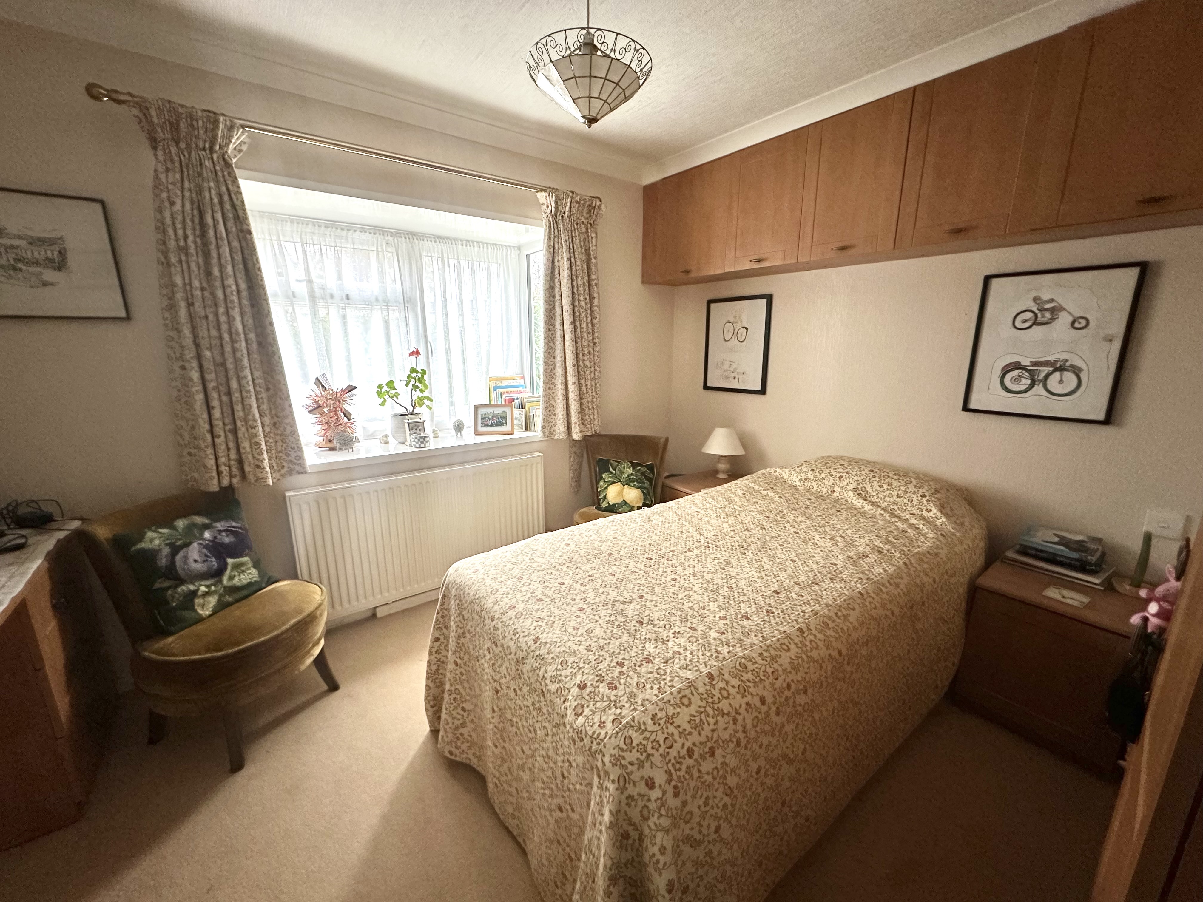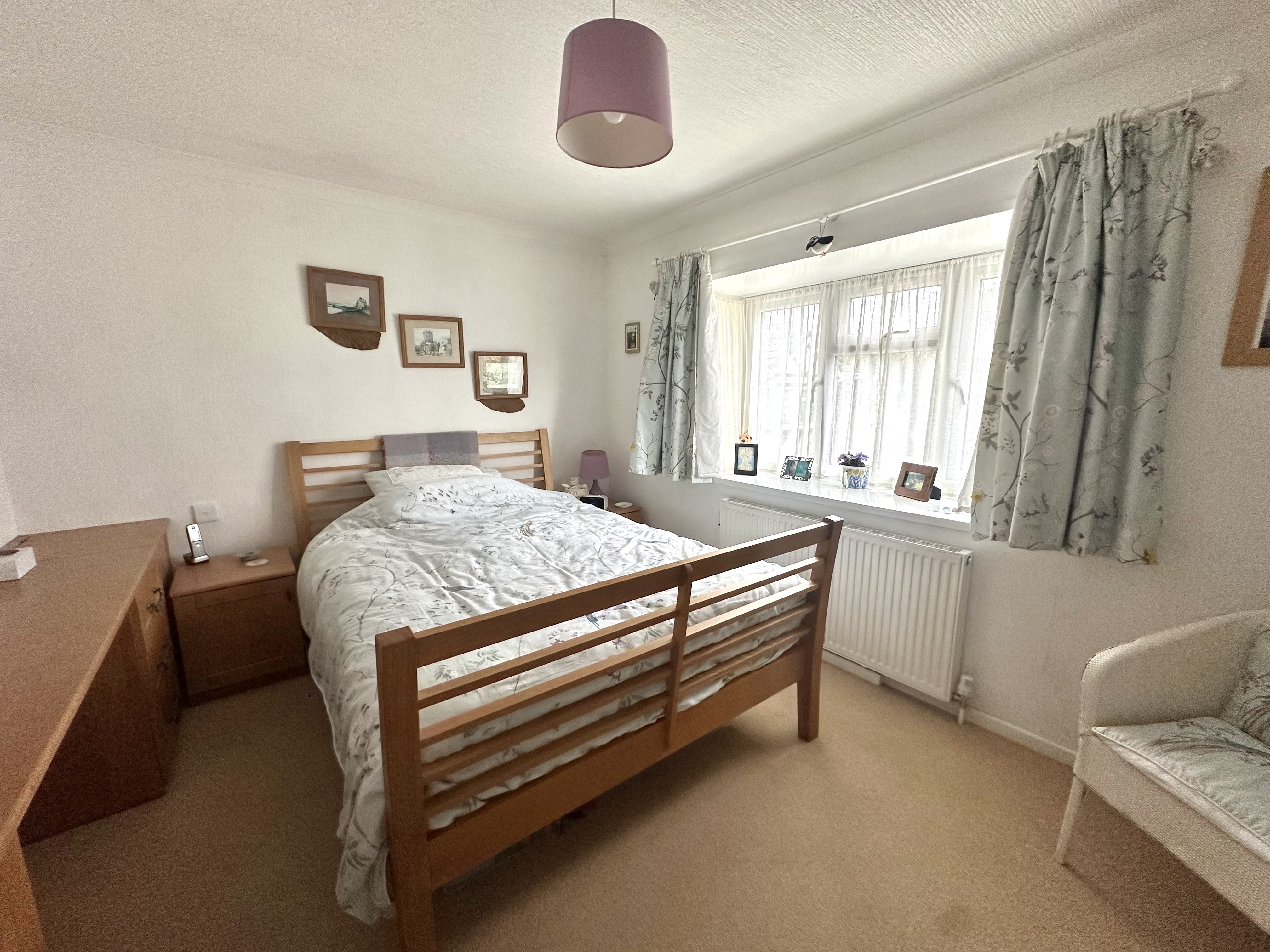 Feature bay window overlooking the rear garden. A range of fitted wardrobes and drawers, radiator.