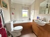 Window to front, integrated shower cubicle with folding glazed doors, wall mounted shower mixer, close coupled WC, pedestal wash hand basin, extractor fan, down lights.