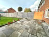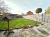 Mainly laid to lawn with panel fences and gate leading to side passage, large Indian sandstone paved patio area, brick built storage shed, a south westerly aspect.
