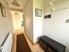 A double glazed UPVC replacement front door leading to a spacious hallway with wood effect flooring, radiator, two large storage cupboards, doors leading to: