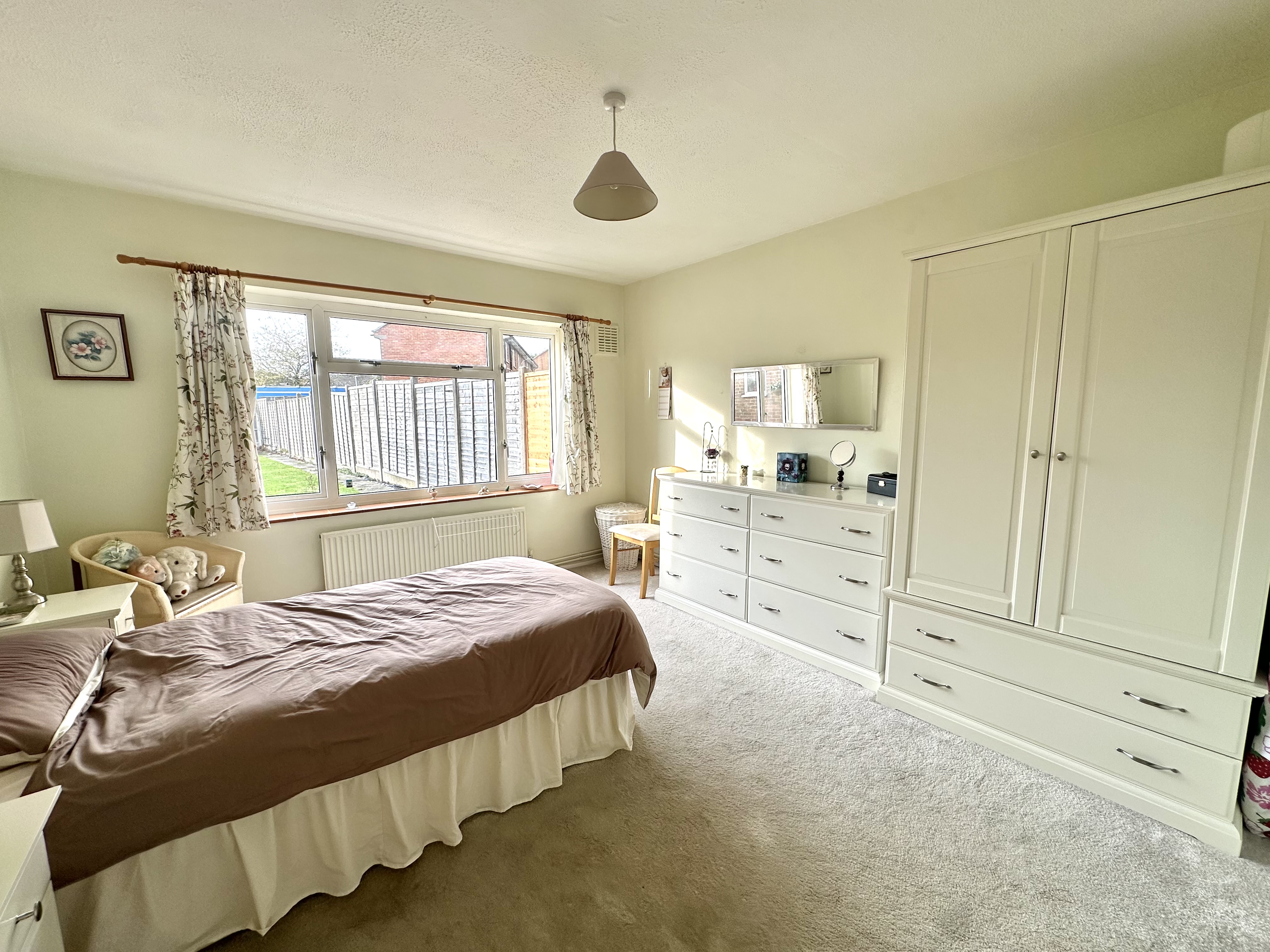 Window overlooking the rear garden, radiator.