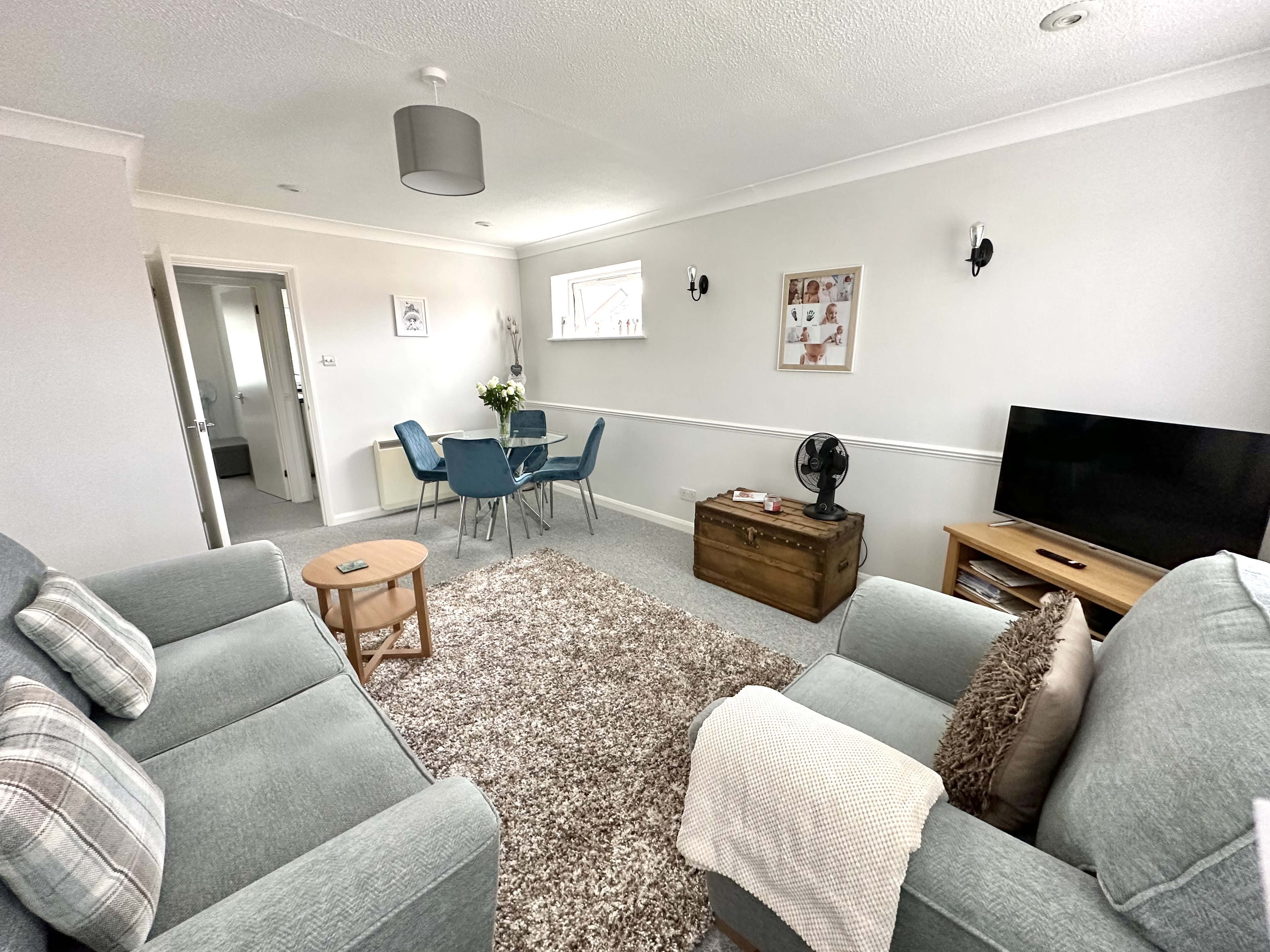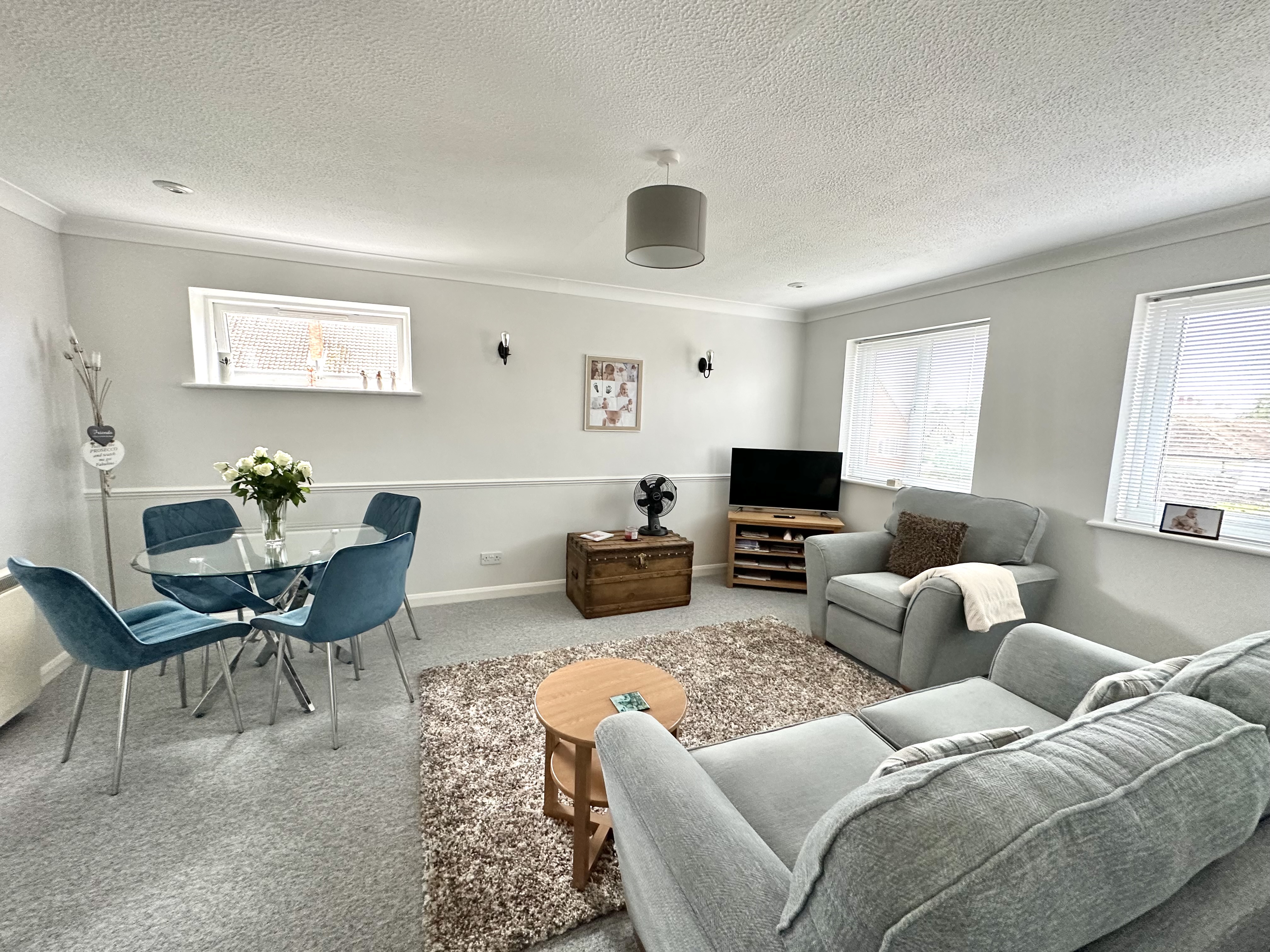 5.048m x 3.874m (16' 7" x 12' 9") Double glazed windows to two sides, electric heater, coving to ceiling ,halogen downlighters Tv point,, spacious storage cupboard ,